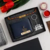 If you and your bro have a flair for distinctive styles then this set for Raksha Bandhan is sure to steal the show. It includes a beautiful Personalized Name Rudraksh Rakhi, a personalized leather wallet with a name and a charm of your choice, and a keychain with name. A complete combo for your brother on this special day.
