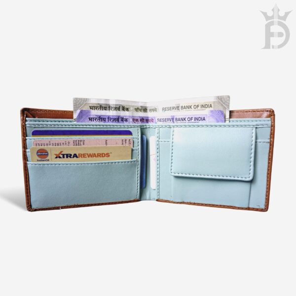 - Men’s wallet has 2 compartments for currency notes. It has slots for 3 cards and also has slot for ID card and a hidden slot.