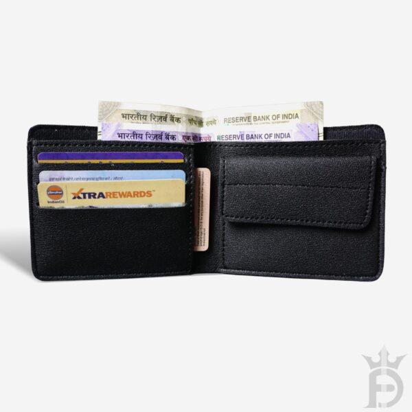 • Men’s wallet has 2 compartments for currency notes. It has slots for 3 cards and also has slot for ID card and a hidden slot.