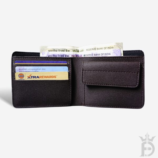- Men’s wallet has 2 compartments for currency notes. It has slots for 3 cards and also has slot for ID card and a hidden slot.