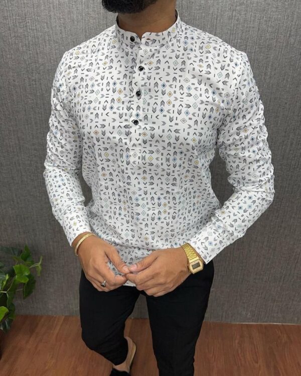 • A slim-fit shirt printed in a multi-color with an attractive random design pattern.