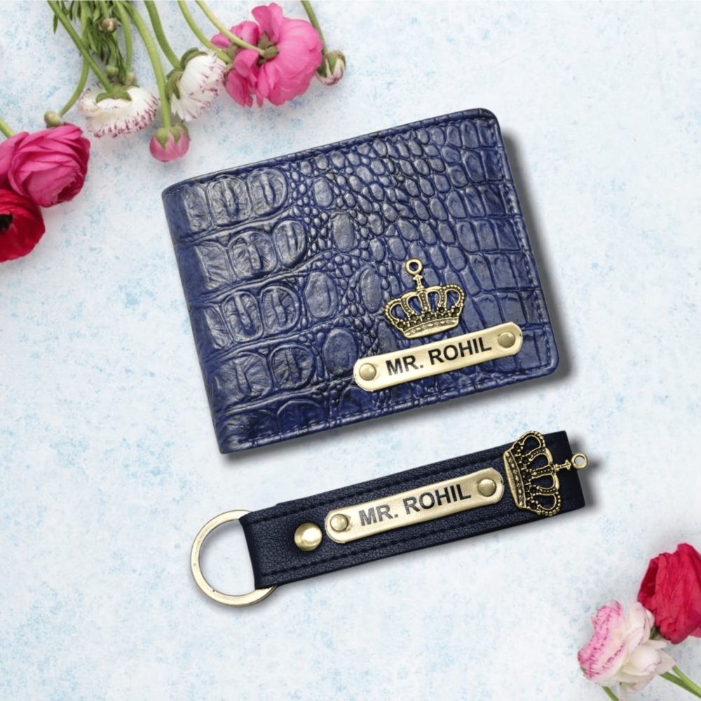 Imported croco wallet + Keychain blue